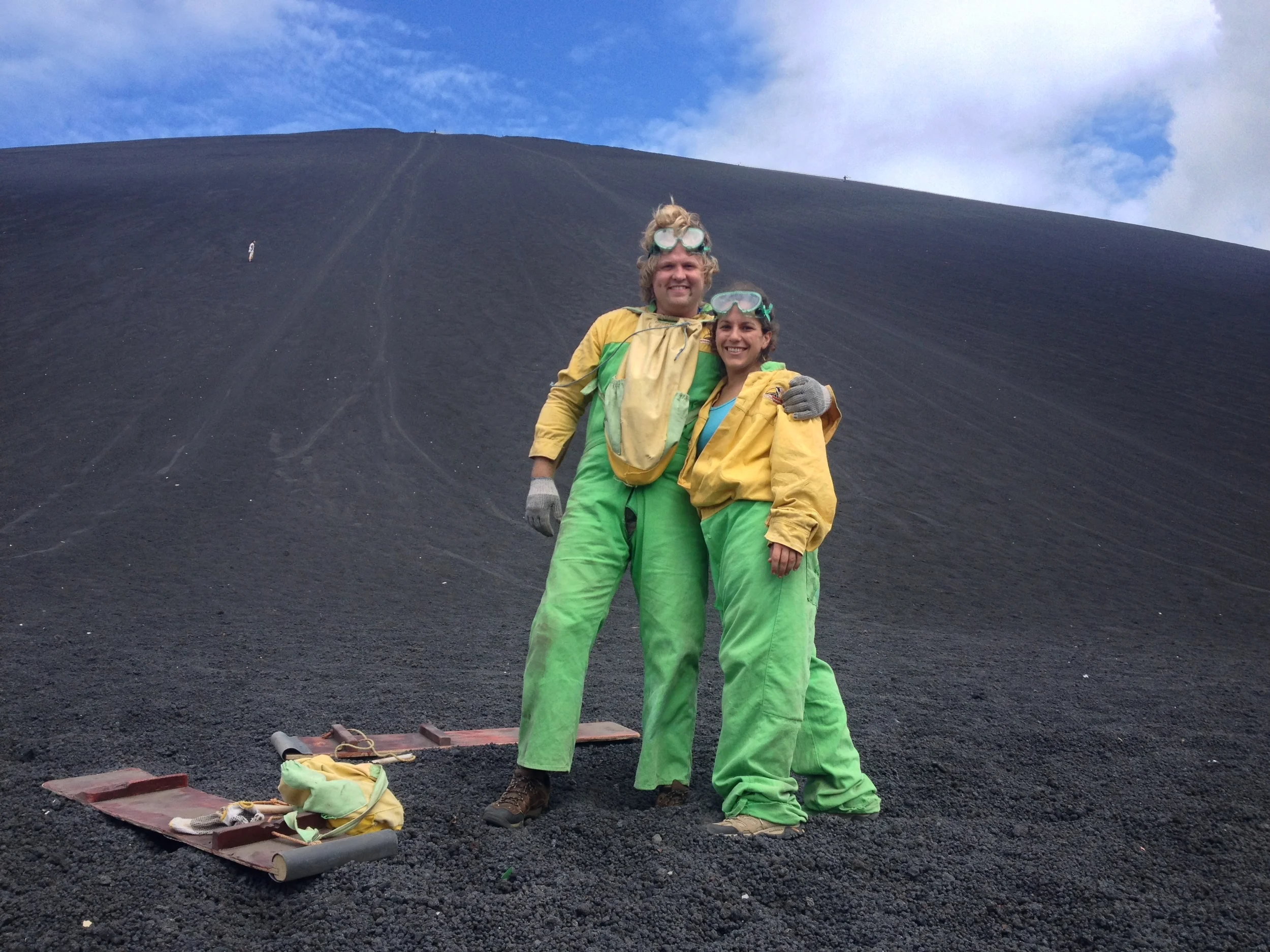 After volcano boarding in Nicaragua with Caroline S.