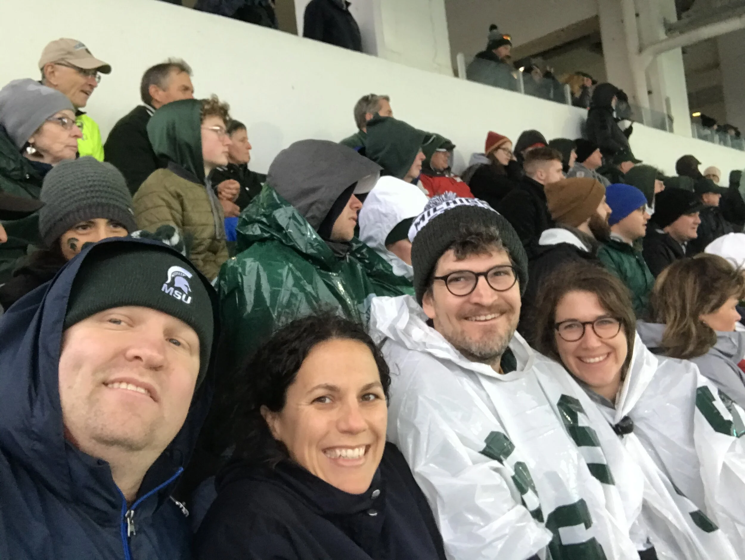 Cheering the Spartans on with Caroline S., Alec J., and Annie Y.